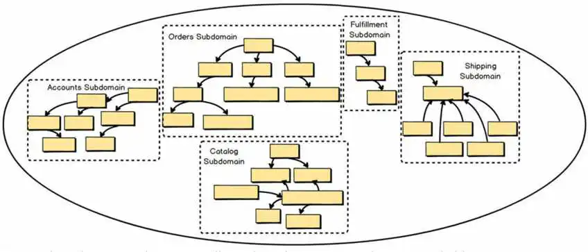 领域驱动设计(DDD)的理念 - 首先由Eric Evans在他的同名书[1]中描述 - 是关于将我们的注意力放在应用程序的核心,关注业务领域固有的复杂性本身。我们还将核心域(业务独有)与支持子域(通常是通用的,如金钱或时间)区分开来,并将更多的设计工作放在核心上。
