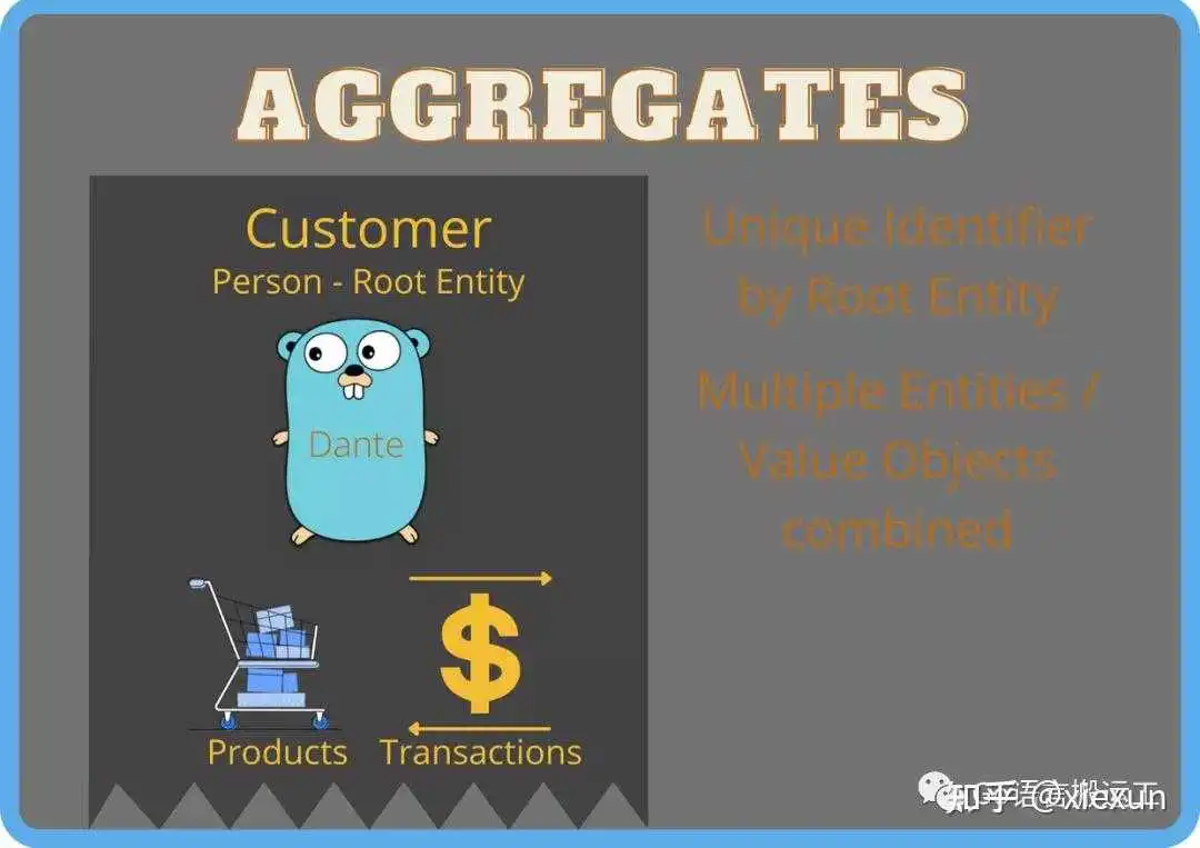 但是,更复杂的可变(事务)实体在建模为聚合时确实会受益,主要是通过减少概念开销。我们不必考虑每个实体,而只考虑聚合根;聚合实体仅仅是聚合的“内部运作”。它们还简化了实体之间的相互作用;我们遵循以下规则:(持久化)引用可能只是聚合的根,而不是聚合中的任何其他实体。