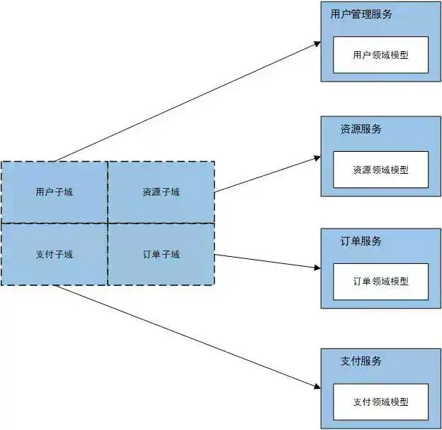 基于领域模型进行拆分,围绕业务领域按职责单一性、功能完整性拆分。