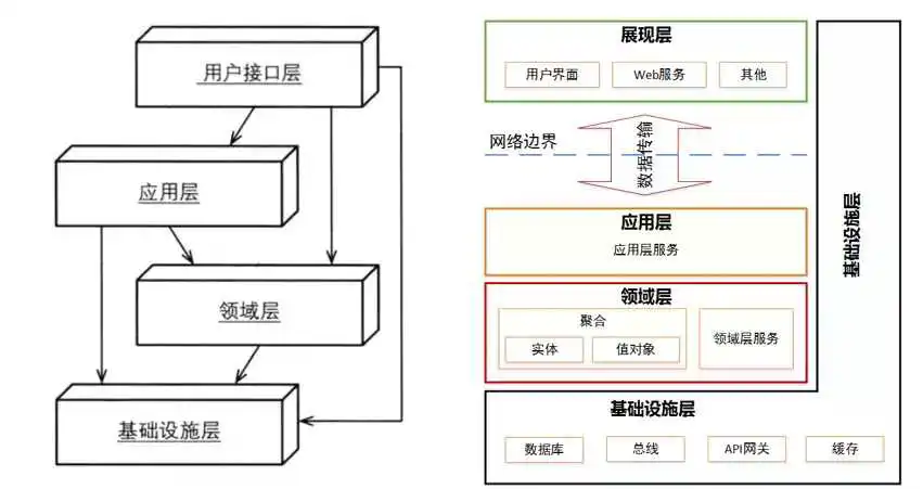 业务层:领域层和业务层都包含业务,但是用途不同。业务层可以组合不同领域业务,并且可以增加流控、监控、日志、权限控制切面,相较于领域层更为丰富,提供BO对象