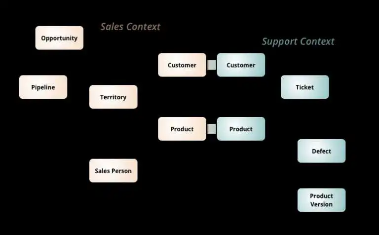 我必须承认,当我第一次读到关于BC时,我看不出这一点:如果BC与域模型同构,为什么要引入一个新术语?如果只有与BC相互作用的最终用户,则可能不需要这个术语。然而,不同的系统(BC)也相互交互,发送文件,传递消息,调用API等。如果我们知道有两个BC相互交互,那么我们知道我们必须注意在一个概念之间进行转换。领域和其他领域。