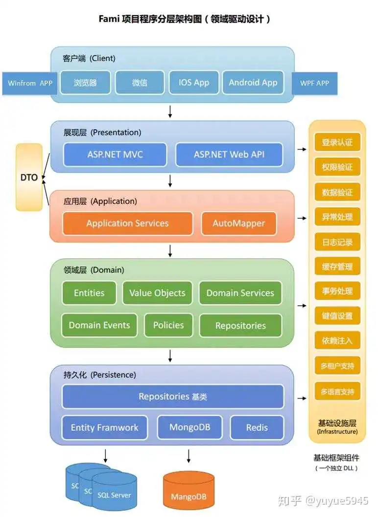 基础层:包含基础功能,例如缓存工具,消息队列,分布式锁,消息发送等功能