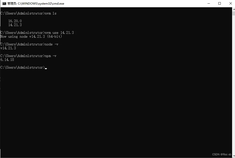 可以看到,我们目前已经成功的安装上了2个nodejs版本了。那么我么如何切换版本呢?