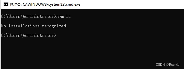 首先,我们使用nvm ls 命令查看一下当前有哪些nodejs版本,可以看见,目前还没有安装任何nodejs版本。