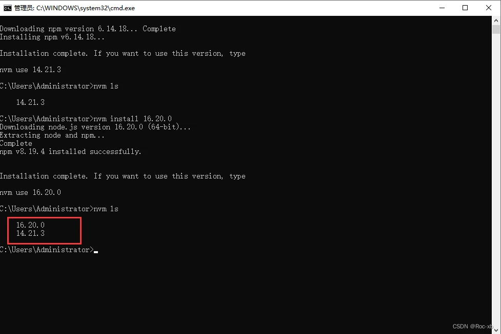 同理,我们再下载安装一个Node.js 16.20.0的版本,可以使用以下命令: