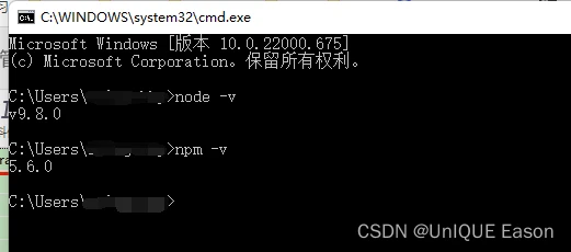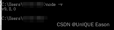 目前可以看到我们的node版本是9.8.0,npm版本是5.6.0