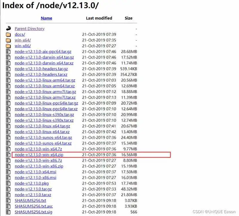 选择所需要下载的版本,我这里下载的是12.13.0,直接下载zip文件