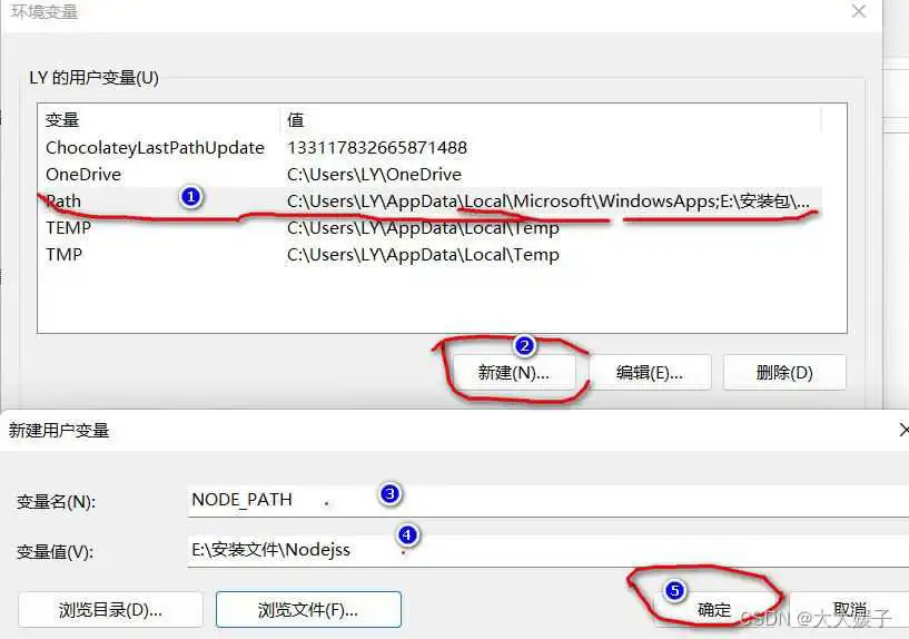 点击新建,输入变量名 NODE_PATH 和 变量值【你自己想要存放node的位置】
