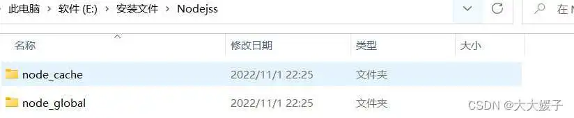 第四步:在自己想要存放node文件夹下创建【node_cache】 和 【node_global】两个文件夹