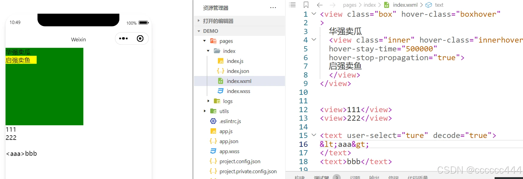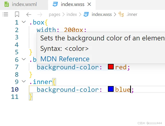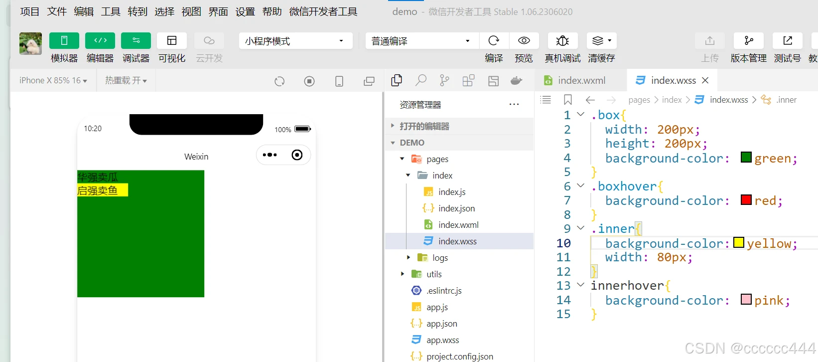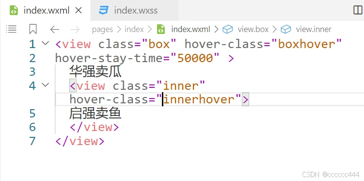 注意:这里发现我的wxss代码用inner标签是直接用的