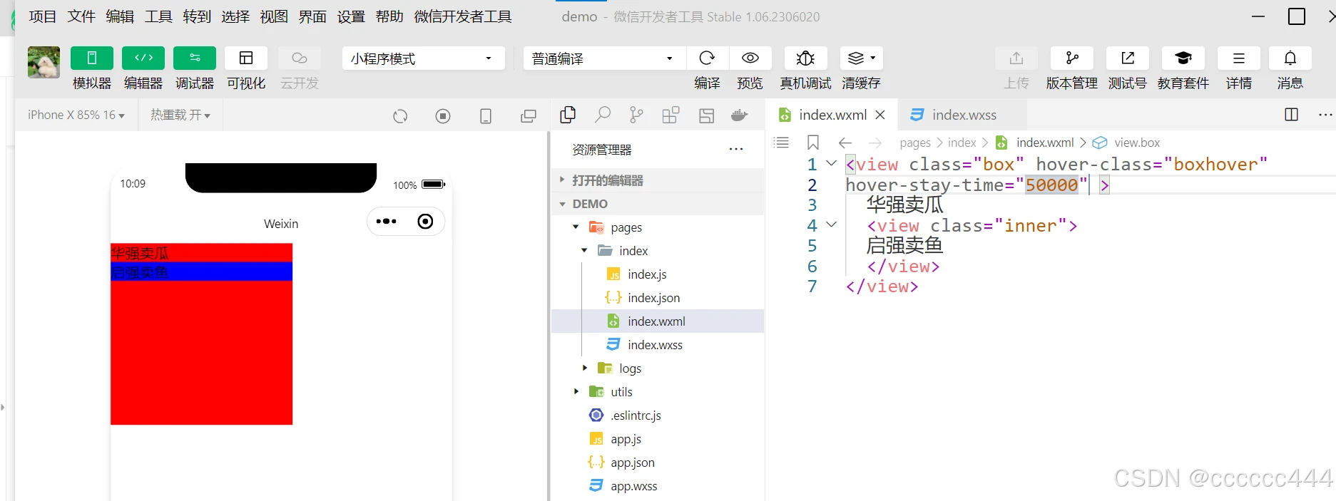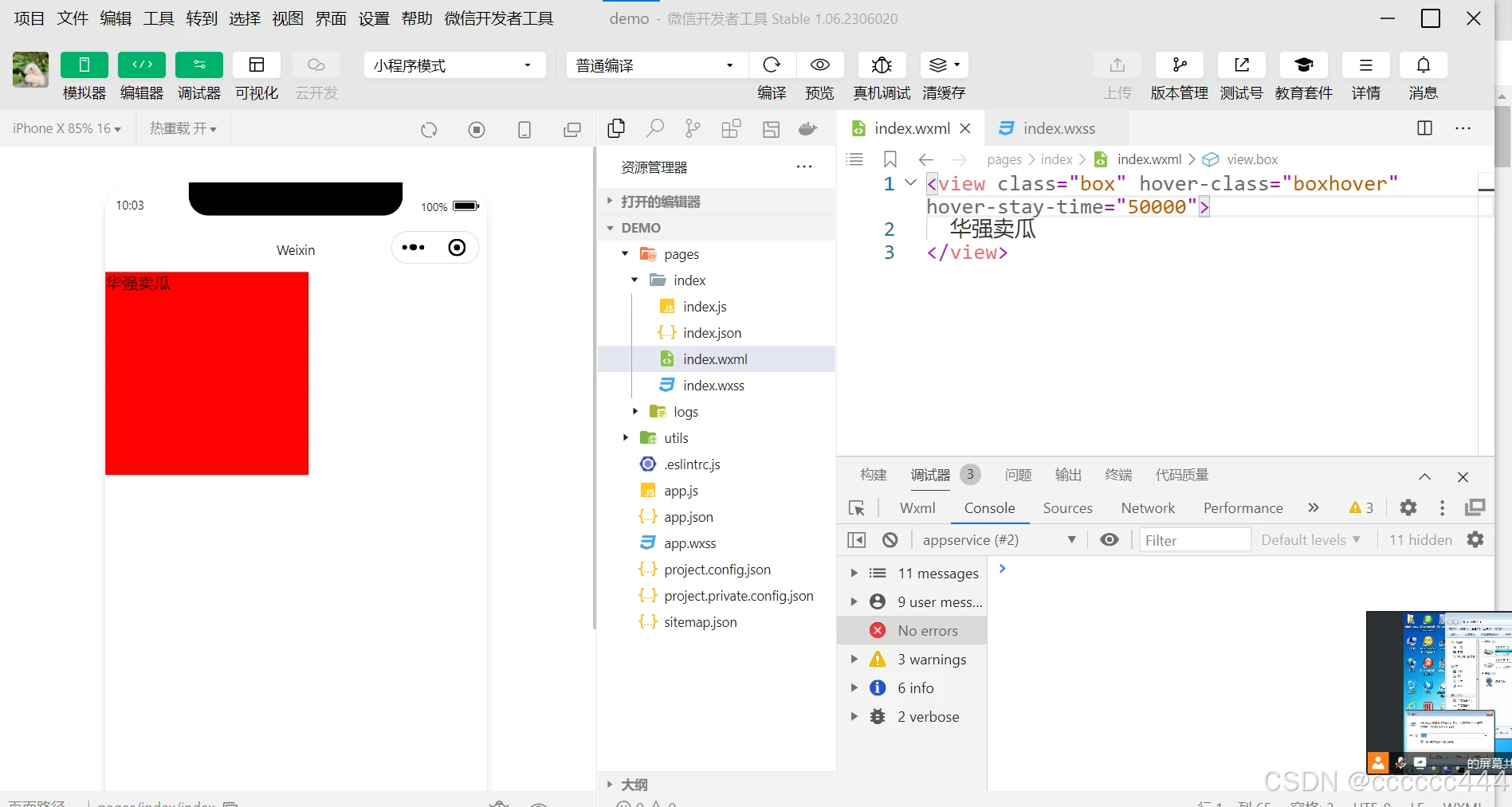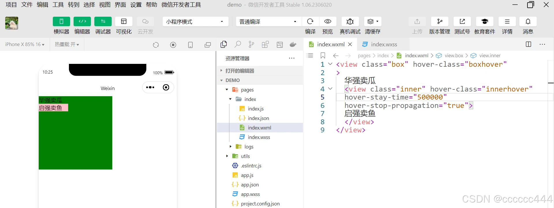 注意:这里发现我的wxss代码用inner标签是直接用的