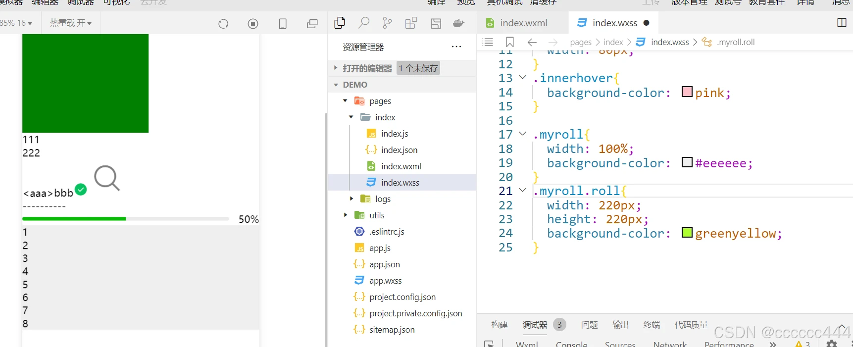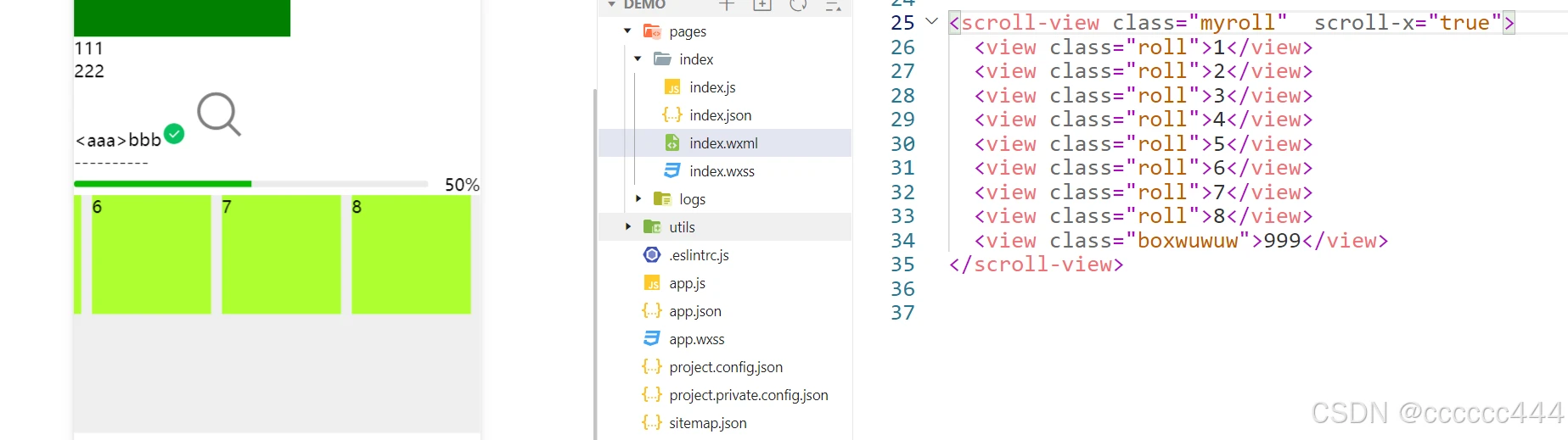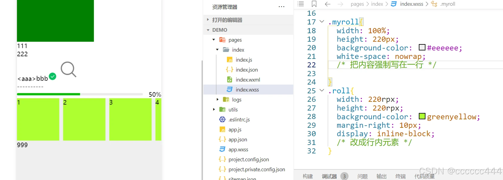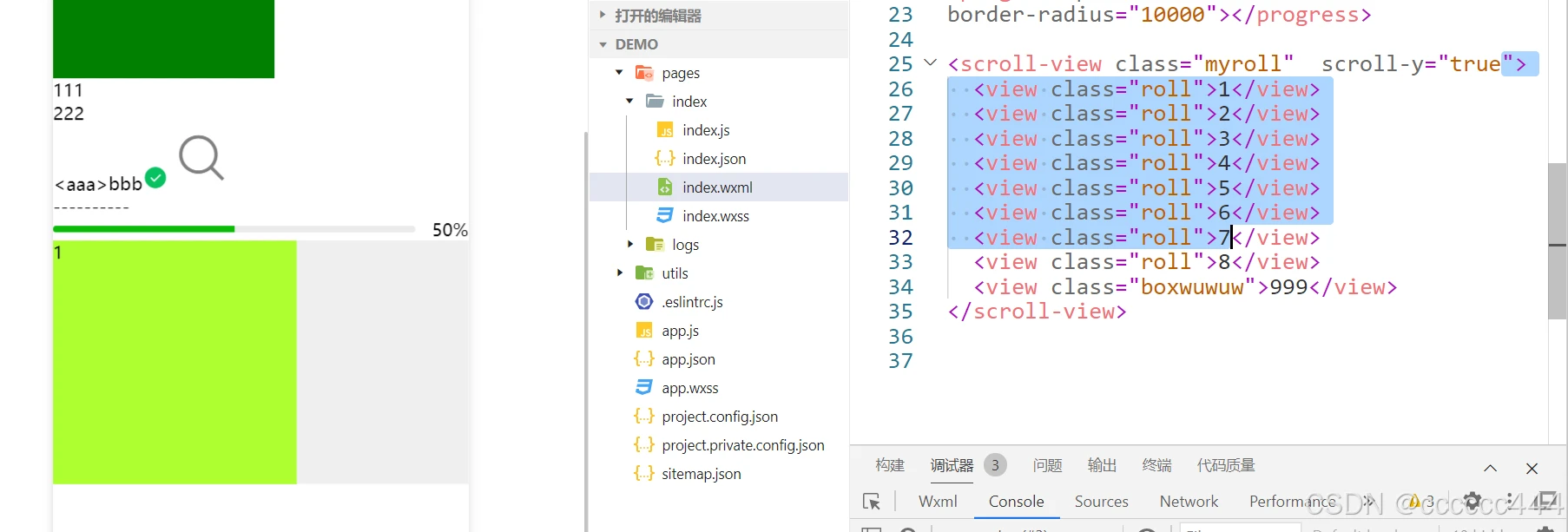 在wxss里面增加一个属性,把这个roll改成块元素并且把元素都放在一行里