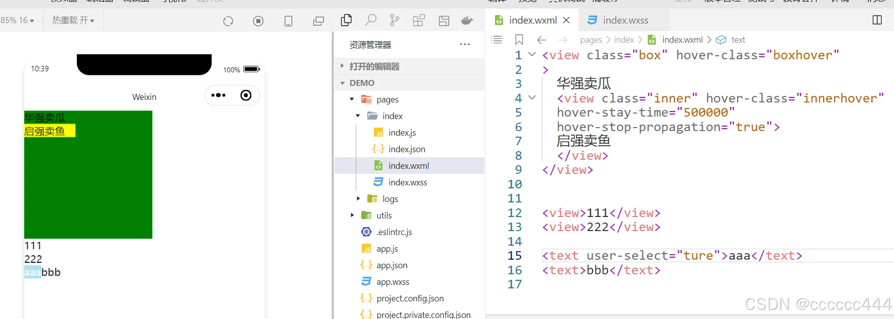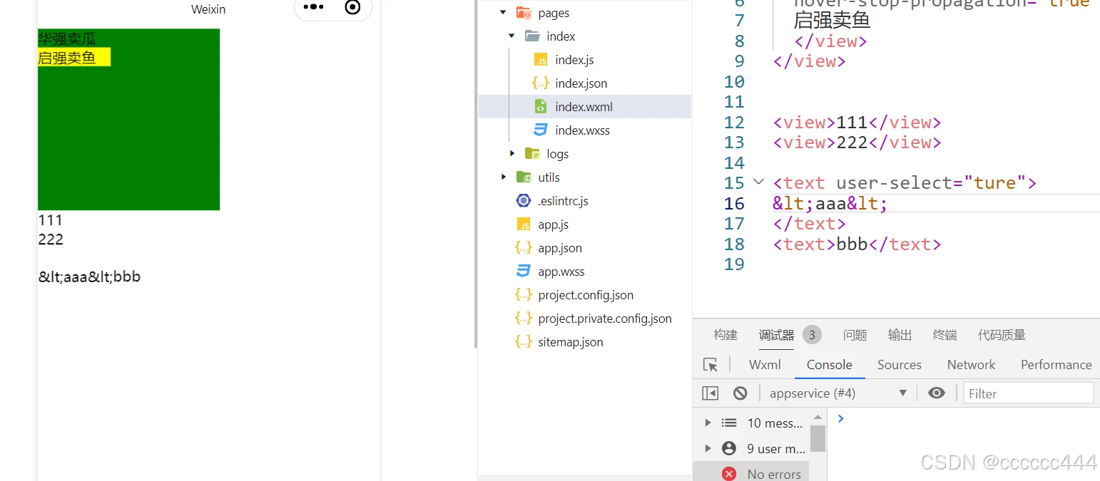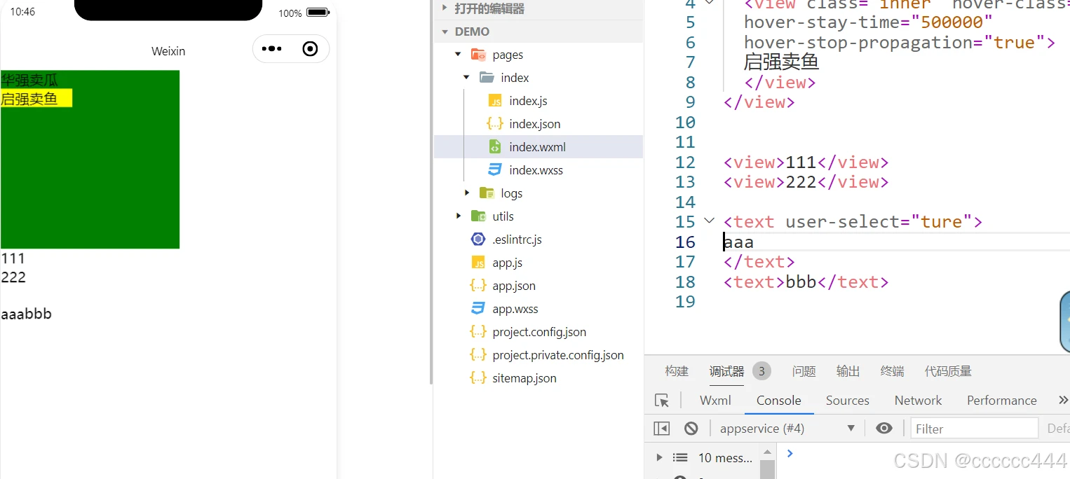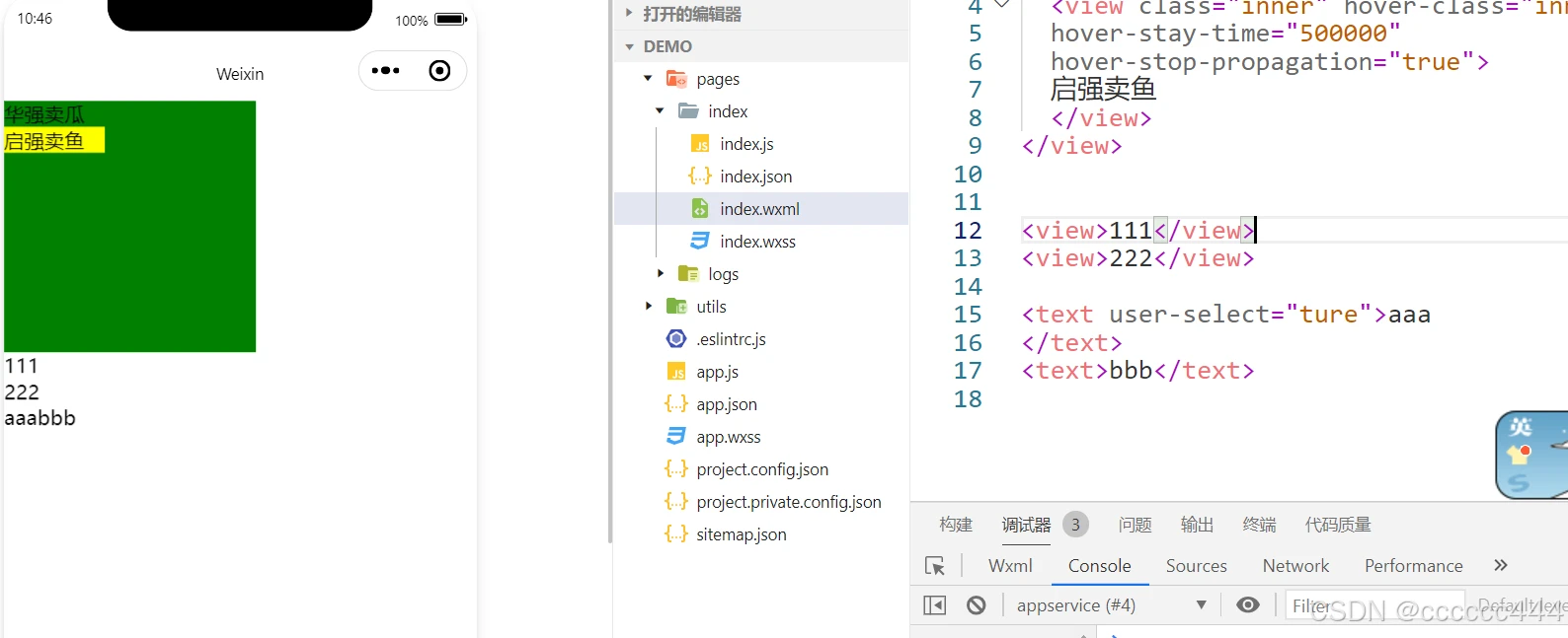 如果想小程序发布之后用户可以选中文本复制,只可以使用<text>标签,只有这个里面可以这样