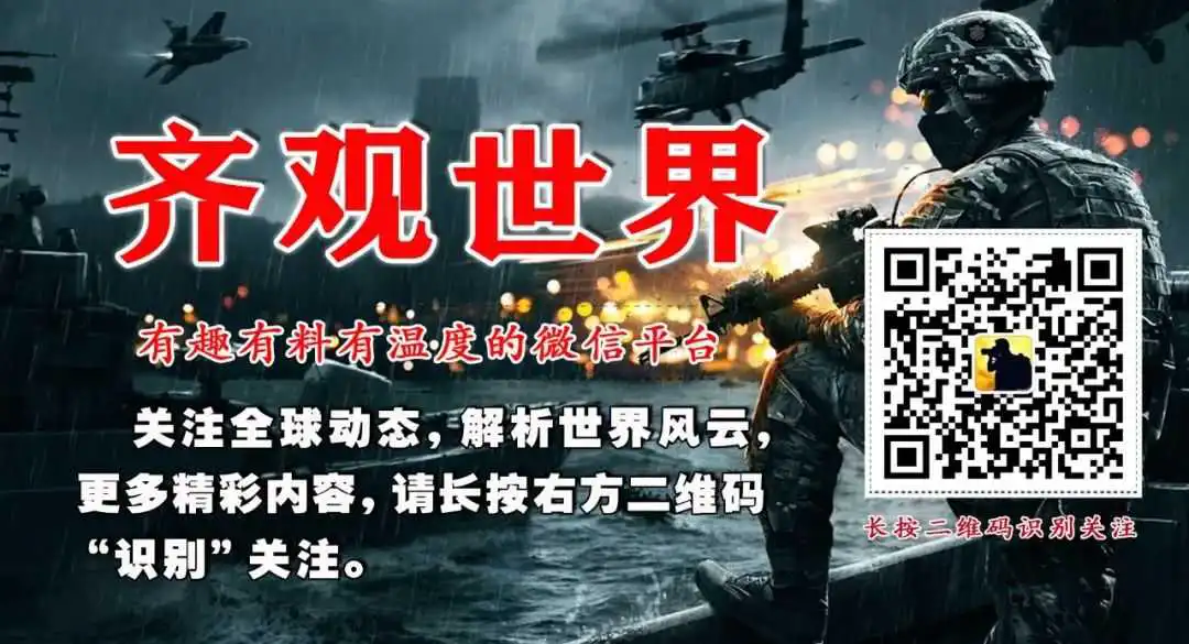 关注全球动态,解析世界风云!更多精彩内容,请长按下方二维码识别关注“齐观世界”,让您足不出户尽知天下事!