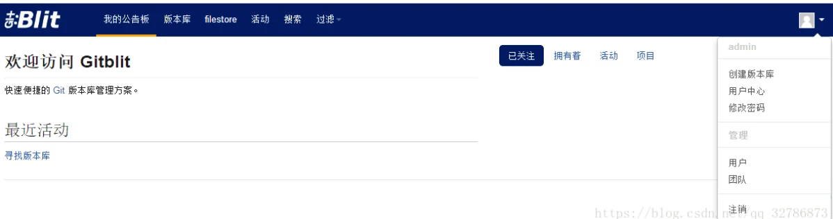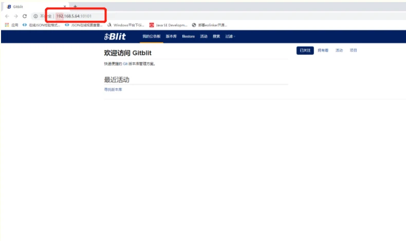 在浏览器中打开http://192.168.5.64:10101/,成功登陆Gitblit服务器。