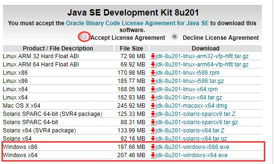 1.勾选Accept License Agreement,2.选择Windows系统对应的版本下载(我选择的是32位,因为64位安装后有问题)