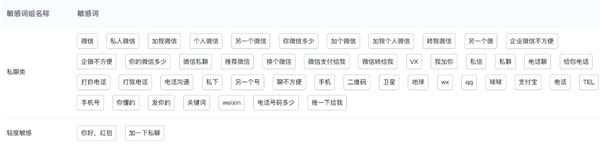 除此之外,企业微信聊天中如果触发了某些引流词,也可能会引发封号、限制等问题,比如: