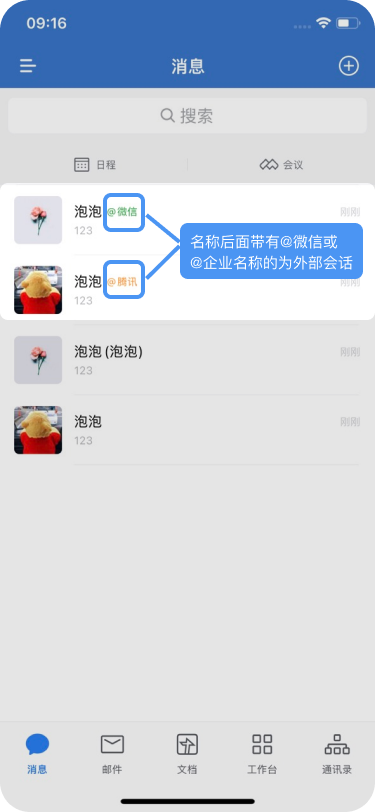 √ 企业内部联系人之间可以发消息