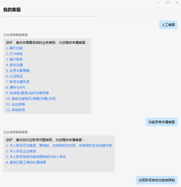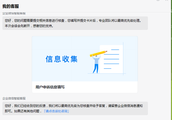 所以我们立刻向企业微信客服进行咨询。