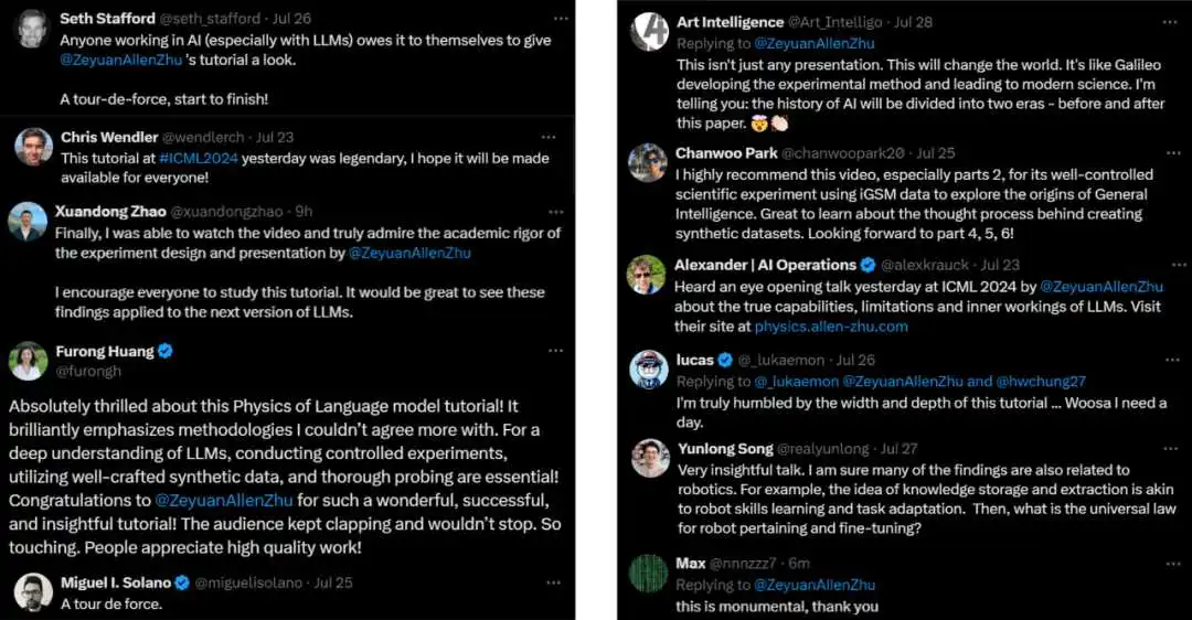 最后,这篇 arXiv 论文是《语言模型物理学》系列作品中的 Part 2.2。此系列目前共 6 篇论文,在 ICML 2024 大会上做了 2 小时的演讲,收获诸多好评(图 7)。有兴趣了解整个系列作品的小