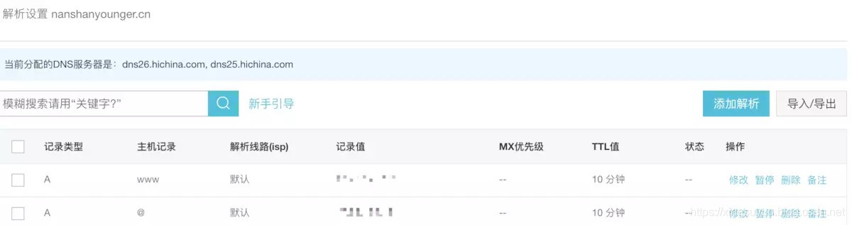 在域名页面里,将申请好的域名进行解析和ssl证书下载: