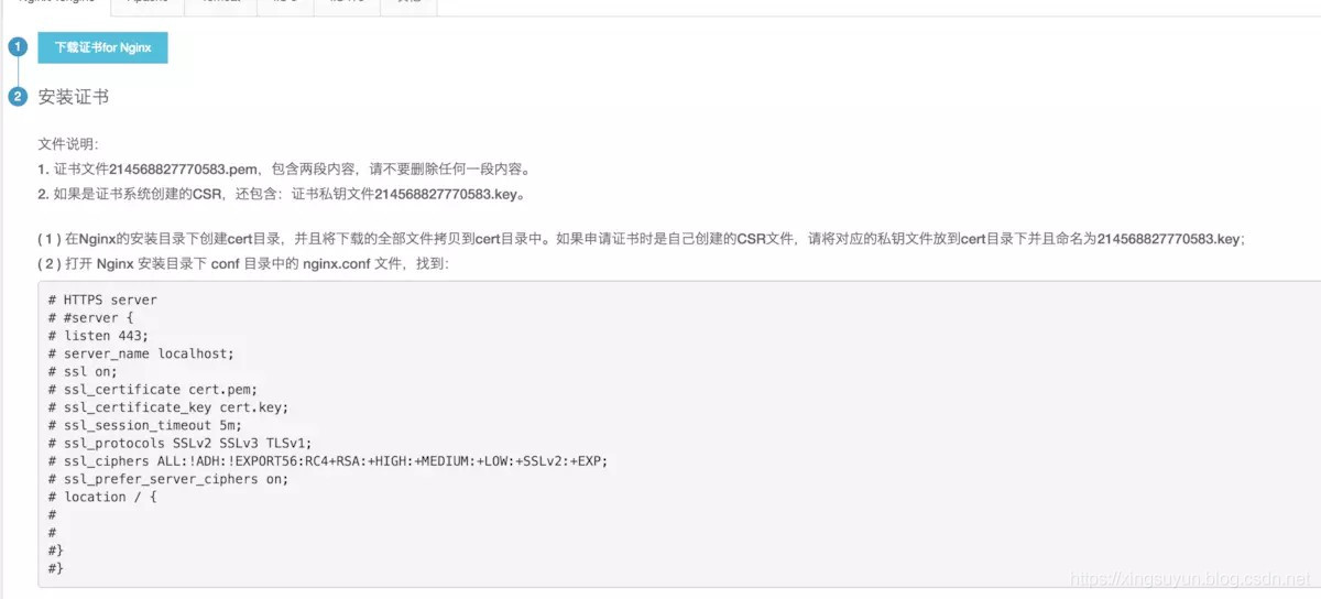 在/etc/nginx/conf/cert文件夹下添加下载好的ssl证书文件