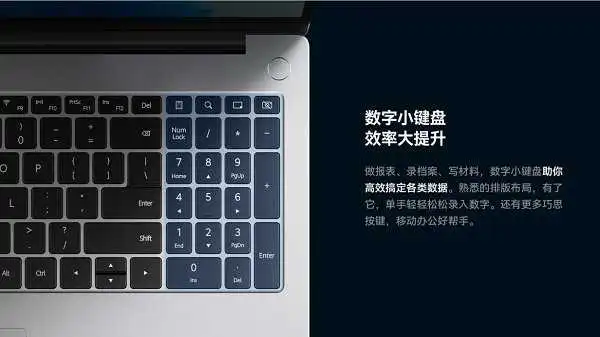 另一方面,作为对输入效率影响最大的键盘,Hi MateBook D 16 也充分考虑了用户的使用需求和体验。为了提高用户的舒适度,Hi MateBook D 16 结合人体工程学设计了 Soft-landing 软着陆键盘,搭配 1.5mm 的高键程,让用户的每一次“指点”都恰到好处,减少长时间打字对手指和手腕的压力,拯救“键盘手”。在打字效率的提升方面,它巧妙地融入了物理快捷键数字小键盘,以及集成了指纹登录功能的电源按键,让用户能够更快速地输入数字及登录系统,此外,还通过一碰传功能,轻轻一碰,就可实现手机与电脑之间的文件传输,为重度办公人群带来了更舒适的便捷体验,让工作与创作的每一步都更加流畅自如。