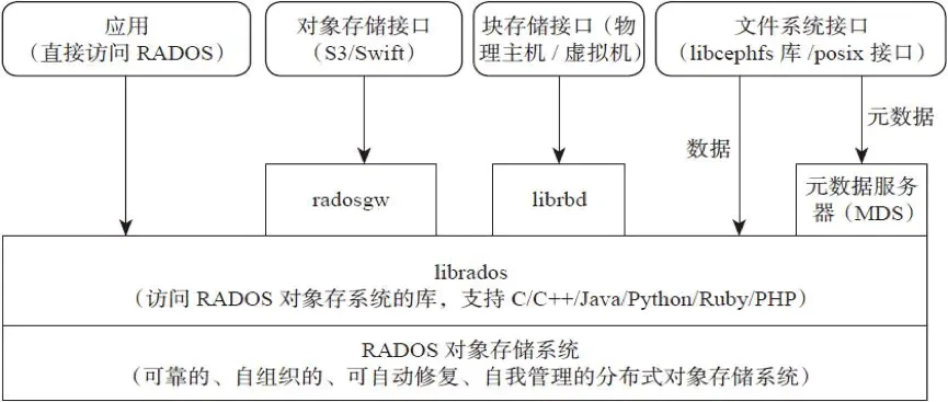 先了解下 ceph 基本组成,有一个大概的了解,这部分内容主要摘抄自 ceph 文档和别人的文章。
