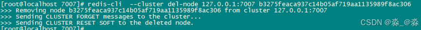 redis-cli --cluster del-nodes 127.0.0.1:7007 b3275feaca937c14b05af719aaf8ac306