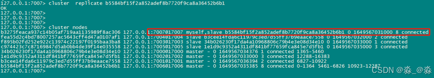 进入到节点7007后台,执行以下命令,id为给其分配的主节点的id。