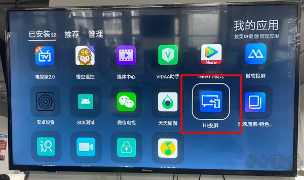 2、打开海信电视,找到顶部栏 应用,下面的 我的应用,找到 HI投屏