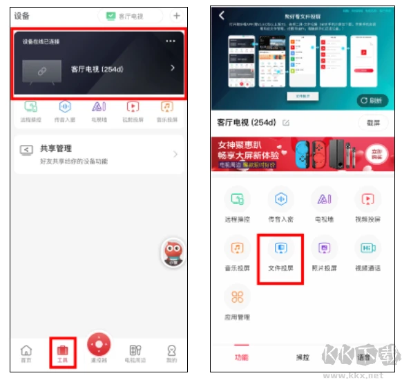 注意:如果没有识别的话,将聚好看应用清除重新打开,并且确认手机和电视连的是同一个WIFI