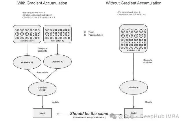 所以当小批量中的序列长度一致且无需填充时,传统的梯度累积方法仍然有效。对于不熟悉填充机制的读者,建议参考相关技术文档以深入理解其对批处理的影响。