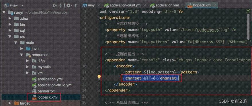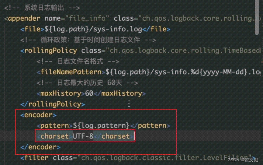 重新设置日志字符集(防止放到服务器上去之后日志出现乱码)
