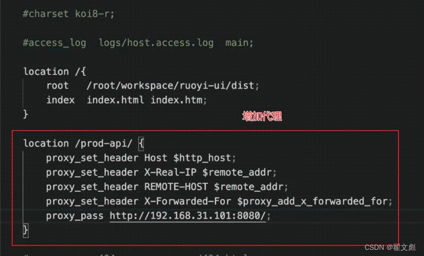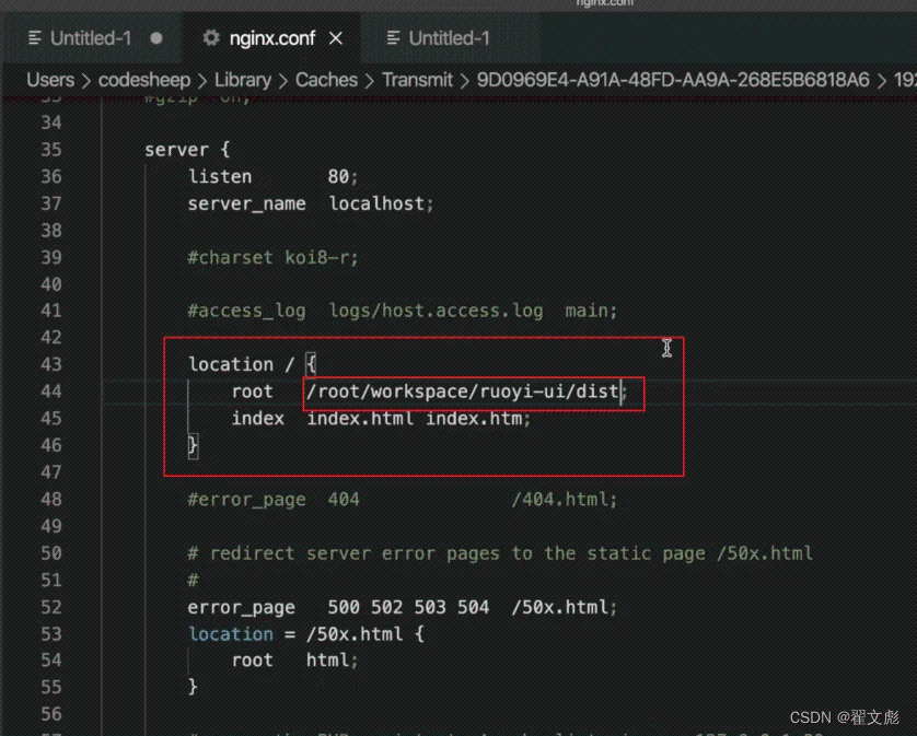 将location位置的root后面跟的路径修改为前端项目打包后的文件地址