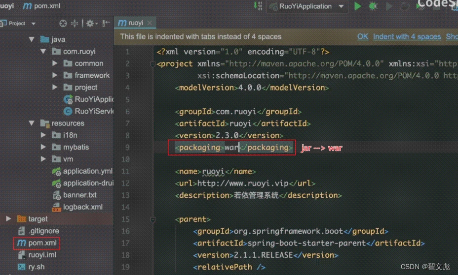 - 使用命令进入到目录就能看到打好的jar包(这里的jar包是ruoyi.jar)