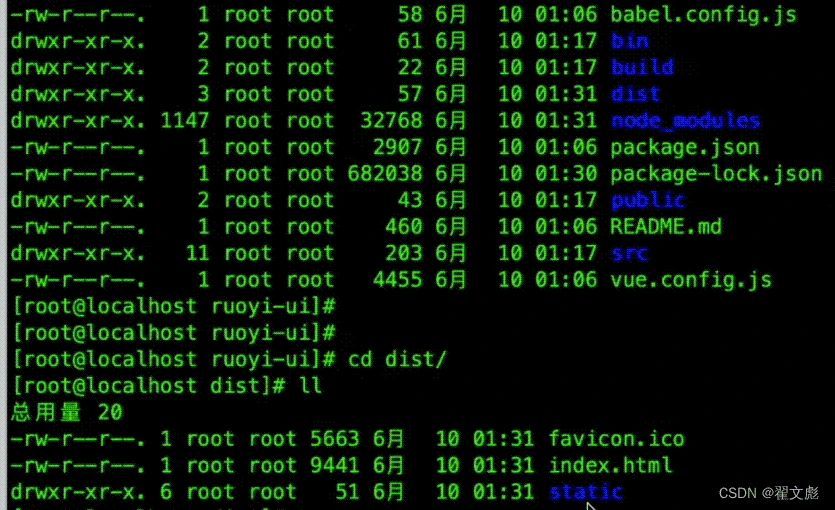 - 使用命令cd ruoyi-ui/进入源码文件夹