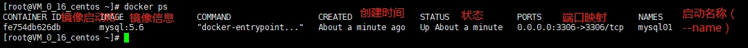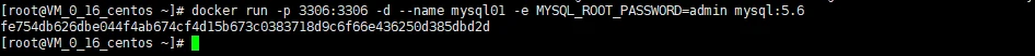 例:docker run -p 3306:3306 -d --name mysql01 -e MYSQL_ROOT_PASSWORD=admin mysql:5.6