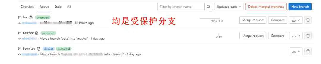 主干分支具有分支保护权限,只有运维有权限进行合并分支