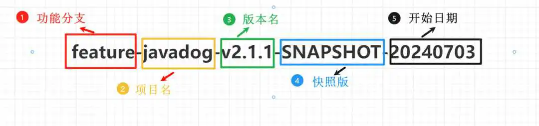 开发环境中,自动化部署都是通过这个分支名进行打包,命名解释如下: