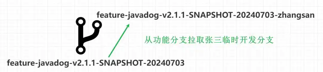 👦张三拉取自己开发临时功能分支:feature-javadog-v2.1.1-SNAPSHOT--zhangsan