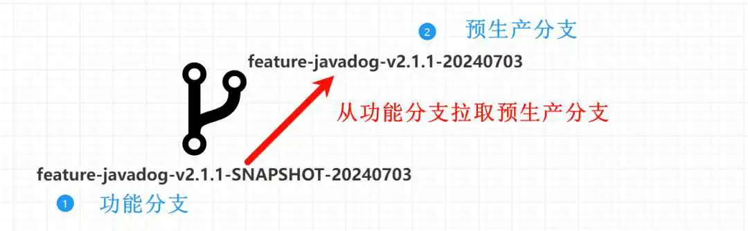 通过功能分支feature-javadog-v2.1.1-SNAPSHOT-,拉取feature-javadog-v2.1.1- 预生产分支,并打出对应tag,然后发布预生产