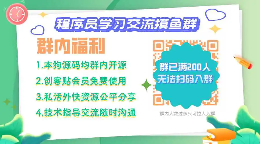 公众号回复【入群】或者【加入】,便可成为【程序员学习交流摸鱼群】的一员,问题随便问,牛逼随便吹,目前群内已有超过280+个小伙伴啦!!!