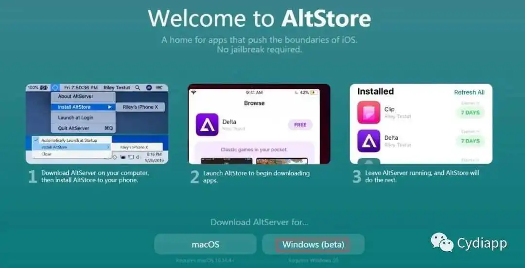 2,电脑上安装Altstore软件,有Mac和win版区别。