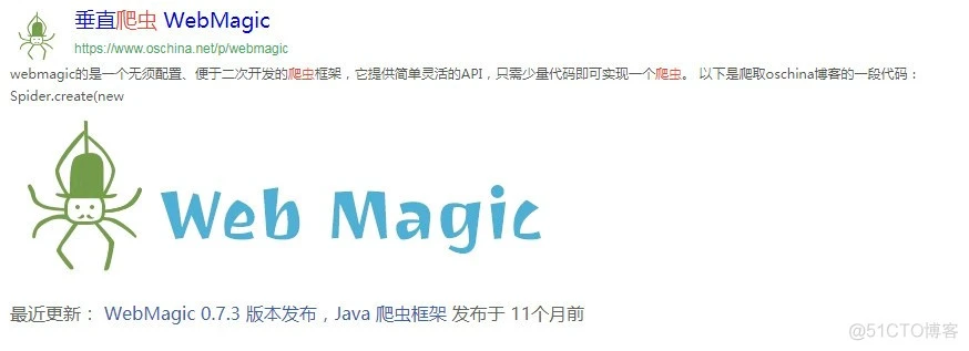 - webmagic的是一个无须配置、便于二次开发的爬虫框架,它提供简单灵活的API,只需少量代码即可实现一