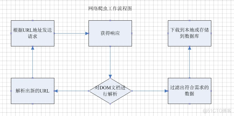 通过上面的流程图 能大概了解到 网络爬虫 干了哪些活 ,根据这些 也就能设计出一个简单的网络爬虫出来.