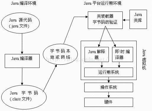 (2)在Java平台的结构中,可以看出,Java虚拟机(JVM)处在核心的位置,是程序与底层操作系统和硬件无关的关键。它的下方是移植接口,移植接口由两部分组成:适配器和Java操作系统,其中依赖于平台的部分称为适配器;JVM通过移植接口在具体的平台和操作系统上实现;在JVM的上方是Java的基本类库和扩展类库以及它们的API, 利用Java API编写的应用程序(application)和小程序(Java applet)可以在任何Java平台上运行而无需考虑底层平台,就是因为有Java虚拟机(JVM)实现了程序与操作系统的分离,从而实现了Java的平台无关性。