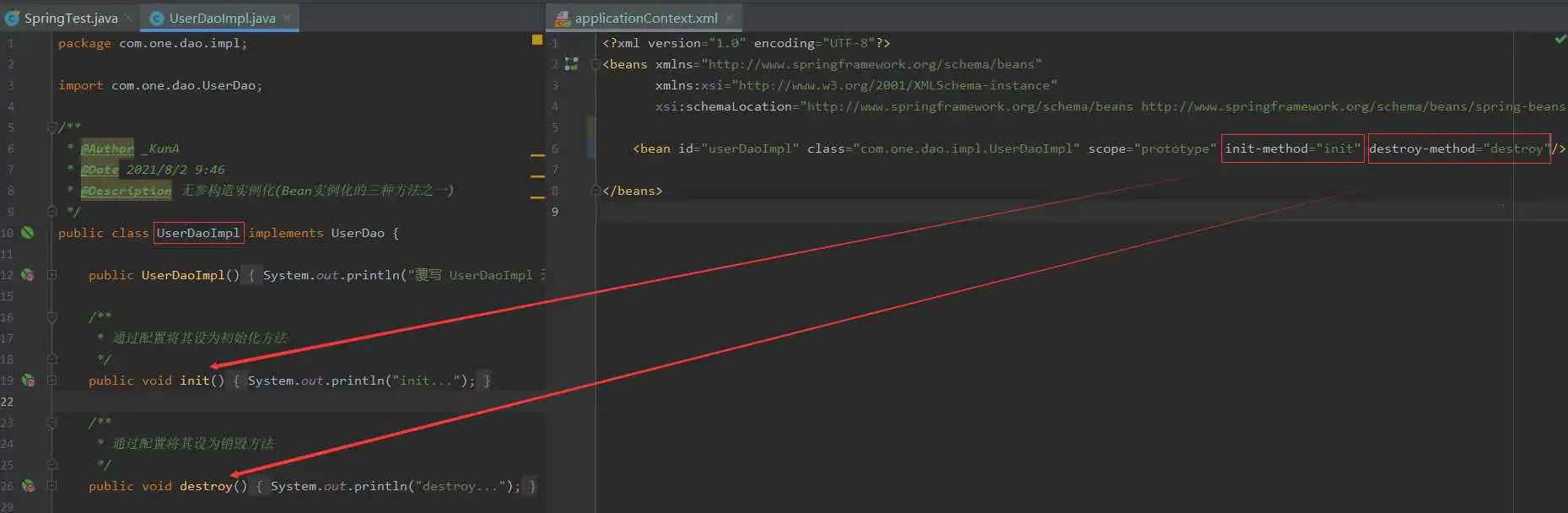 有关 Bean 生命周期配置,需要用到以下两个属性: