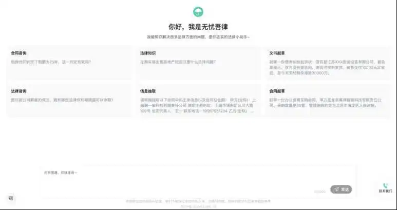近日,幂律智能正式推出了 无忧吾律AI法律服务平台 ,通过智能化、自动化的方式,为企业提供了一站式的法律解决方案。无忧吾律AI法律服务平台是幂律智能基于自主研发的千亿参数法律大模型,打造的企业AI法律服务平台,能够为企业提供智能问答,合同审查,文件起草等AI法律服务。其核心价值在于自助高效的服务模式,用户只需在线提交法律需求,平台即可快速响应并给出专业的解决方案。