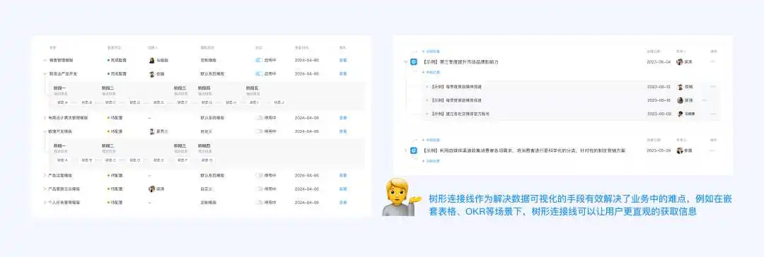 (2) 树形连接线新范式,数据关系呈现简单明了